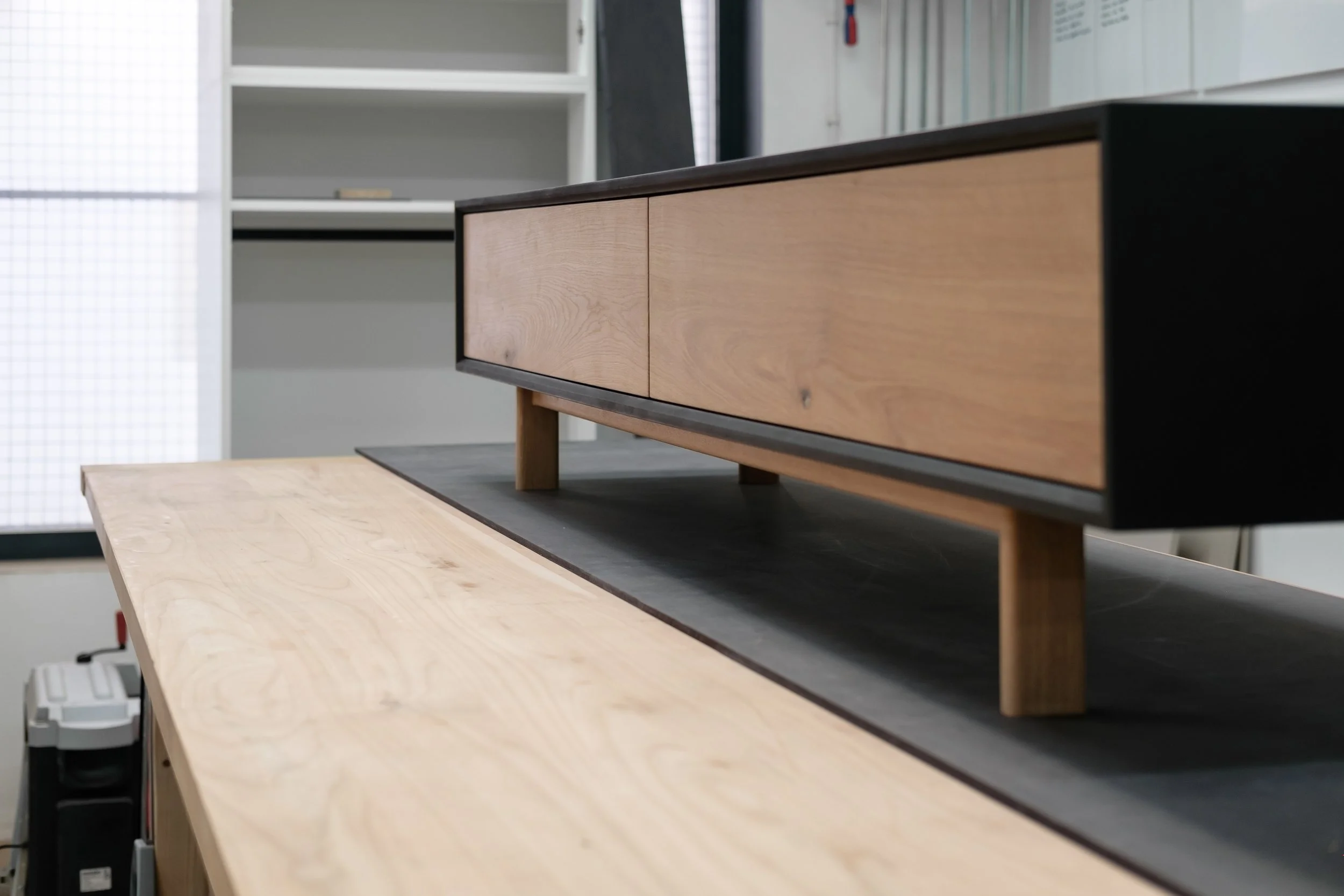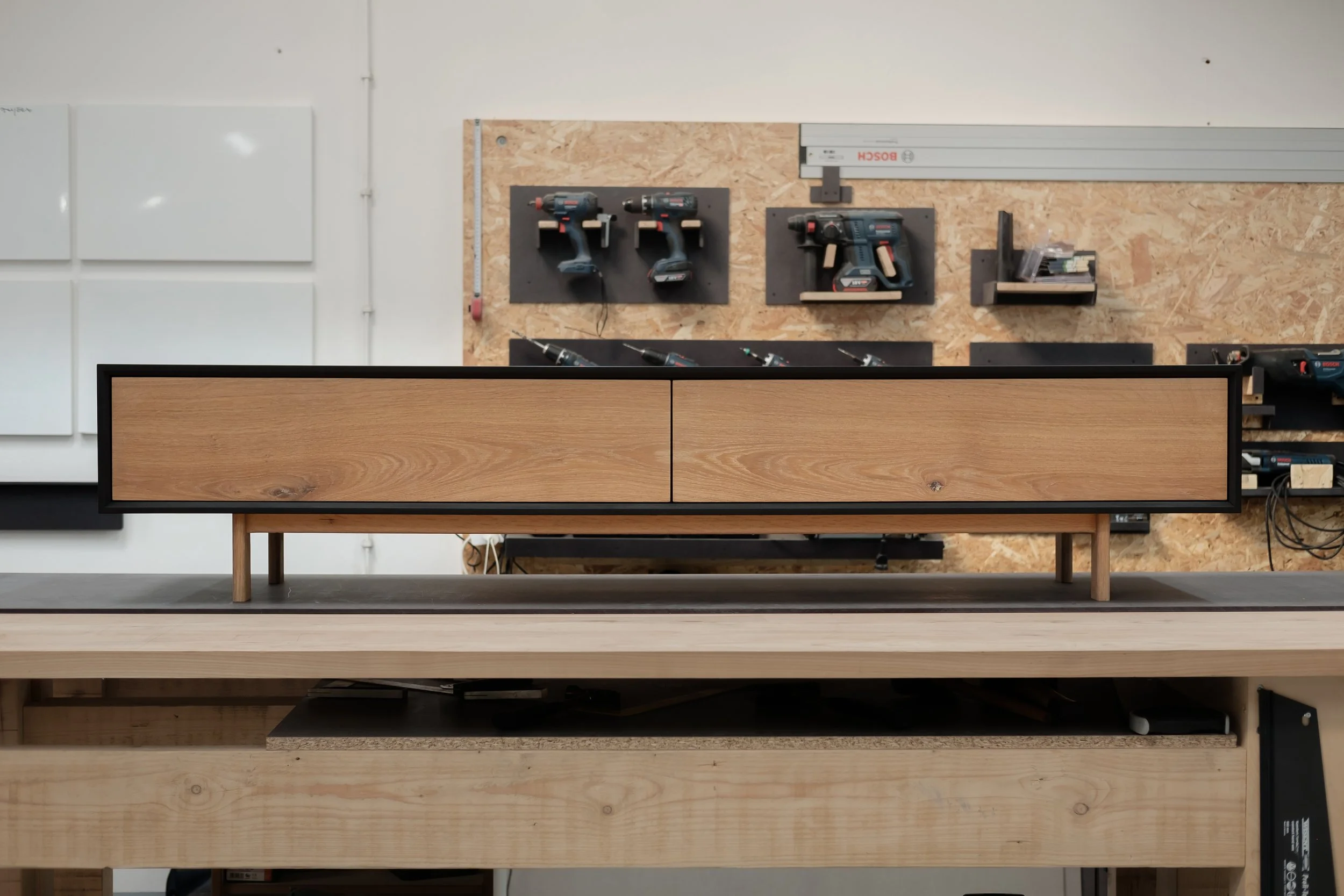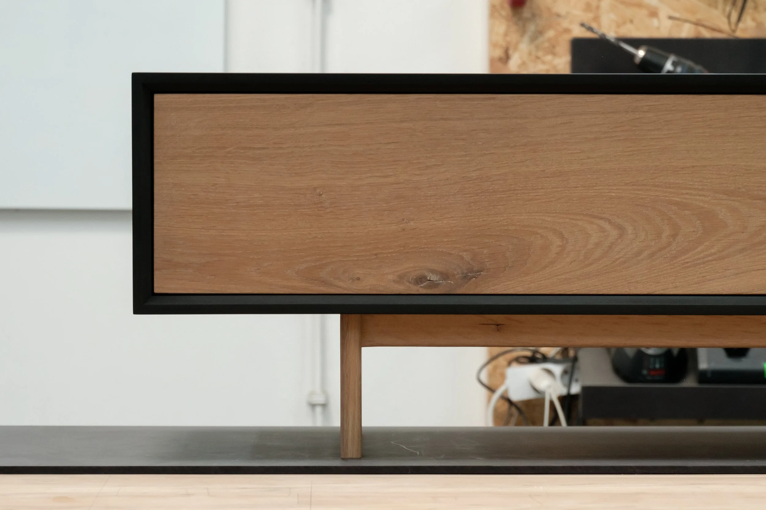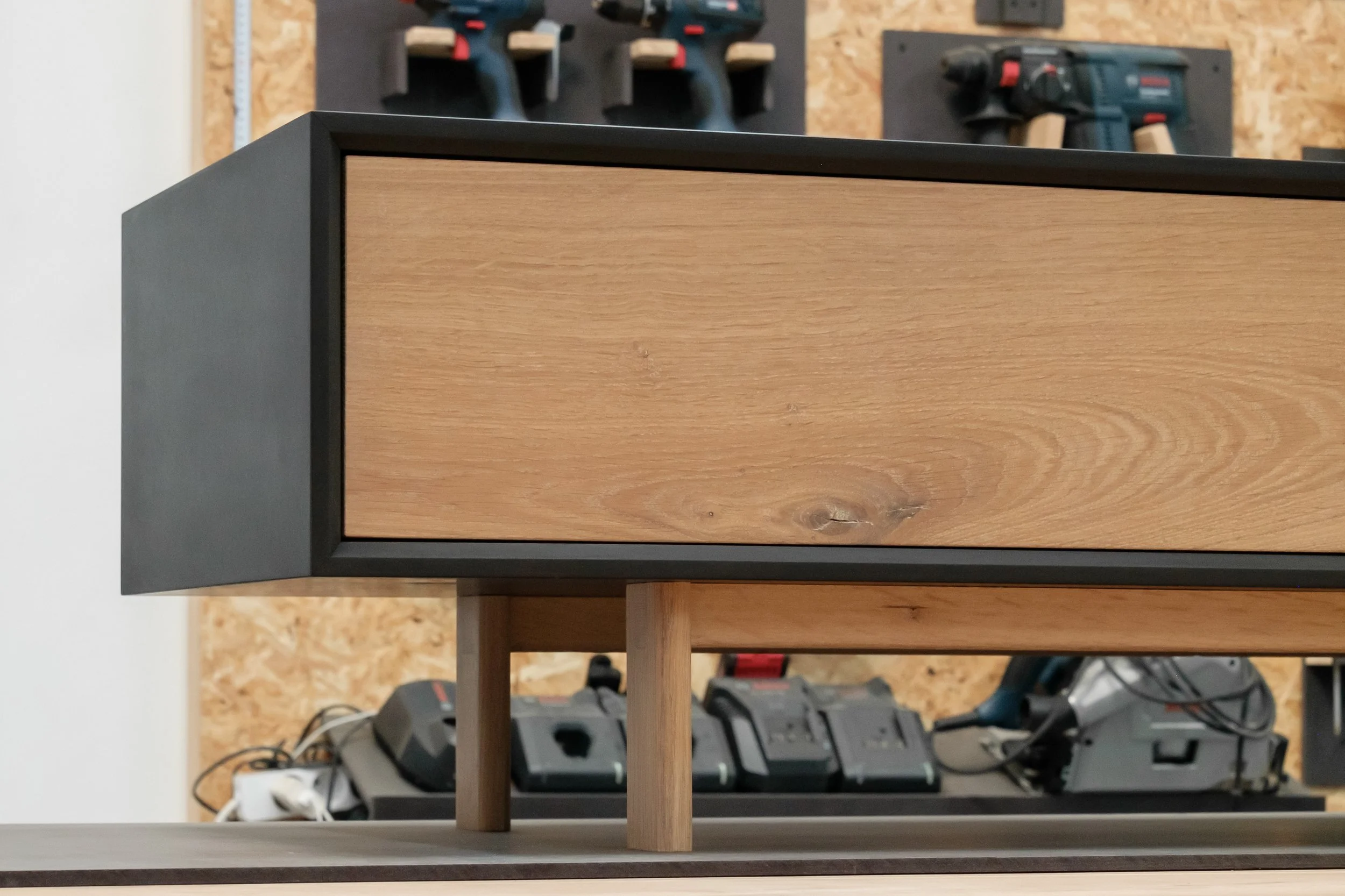 TV klupa od hrasta i crnog medijapana